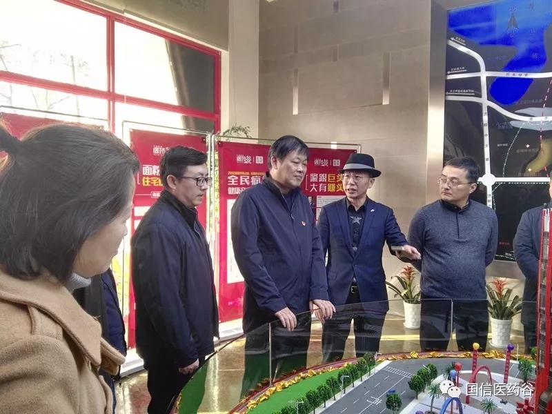 2017年12月4日下午,南昌市政府秘書長吳長金、青山湖區區長王強等一行20余人蒞臨江西國信醫藥谷及樂成生物科技有限公司視察指導工作,南昌市信仁富基商業管理有限公司董事長喻旻昕和江西樂成醫療集團董事長萬蒙陪同視察。